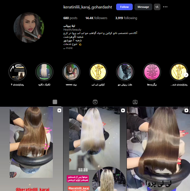 مرکز کراتینه مو لی لی پروا گوهردشت